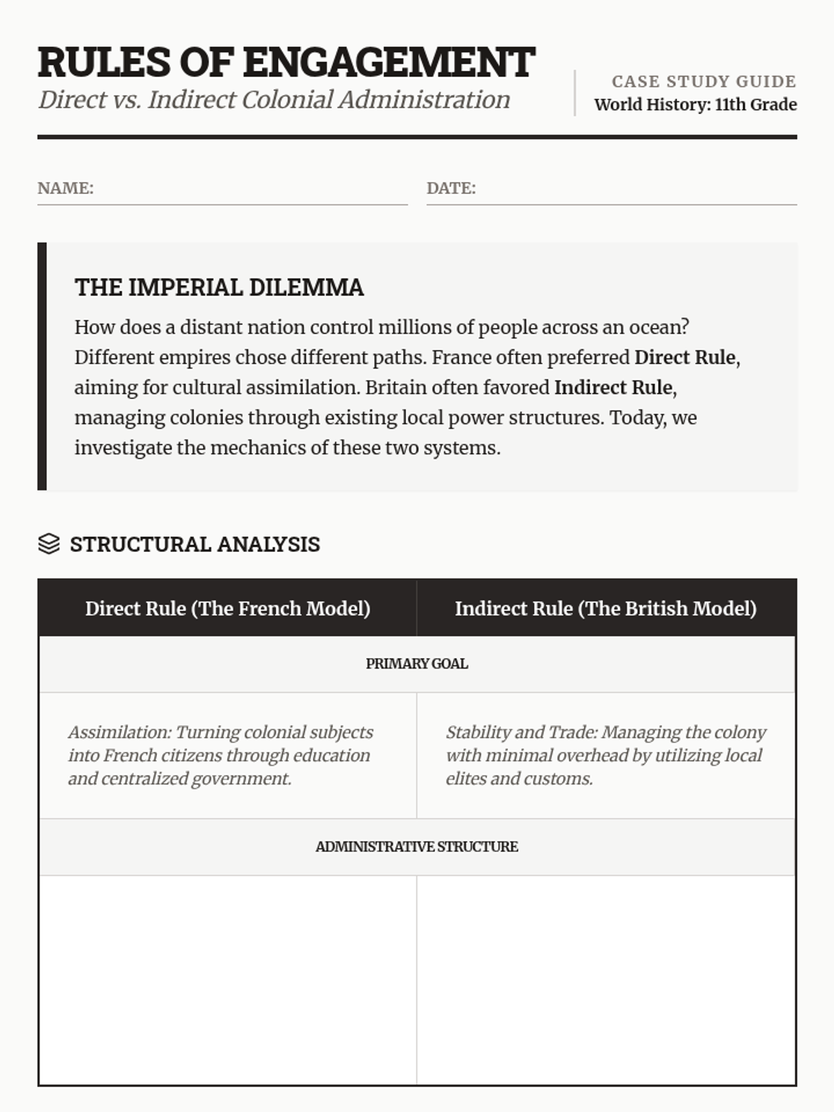 This sequence examines the administrative and economic mechanisms of 19th and 20th-century imperialism, focusing on the differences between direct and indirect rule, the transition to extraction-based economies, and the long-term cultural impacts of colonial education. Students analyze primary sources, maps, and economic data to evaluate the complex legacy of 'modernization' versus exploitation.