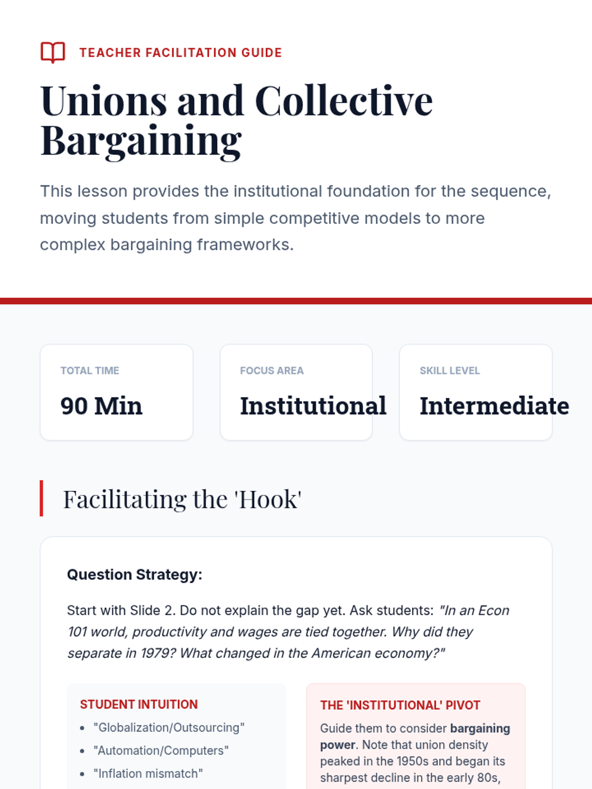 This sequence explores the relationship between labor, technology, and bargaining power. Students analyze microeconomic hiring theories, the historical role of unions, and the transformative impact of automation and AI on the future workforce.