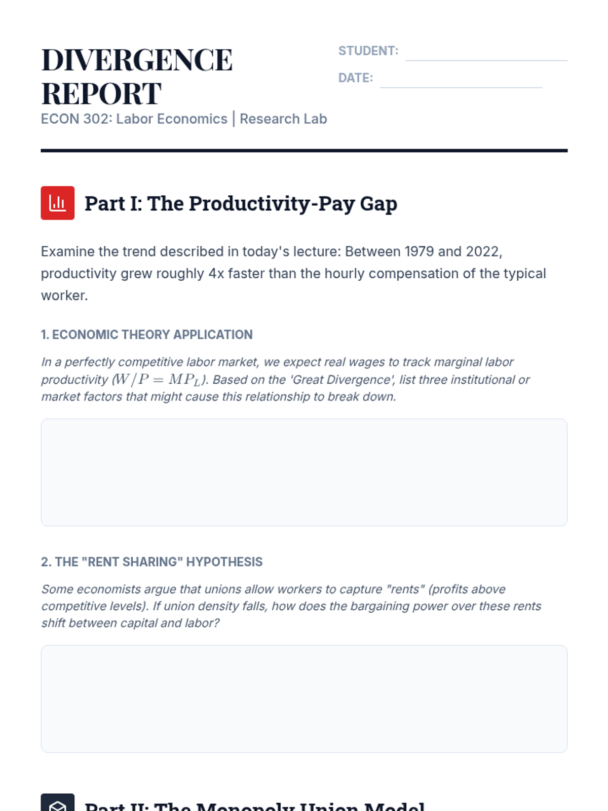 This sequence explores the institutional and technological forces reshaping the modern workforce, from the impact of unions to the rise of automation and AI. Students analyze economic models of bargaining, investigate labor market polarization, and debate policy responses like Universal Basic Income and job guarantees.