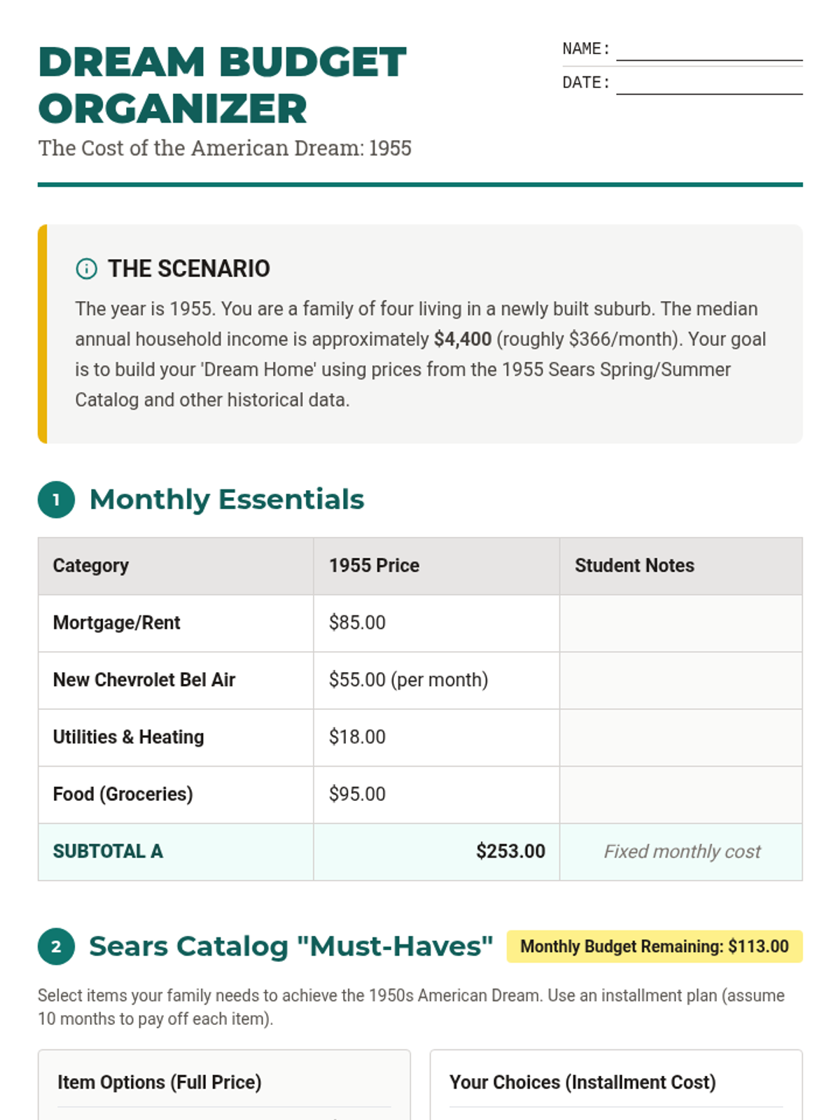 A comprehensive 5-lesson unit exploring the economic drivers of the 1920s, the emergence of consumer culture, the agricultural crisis, and the systemic failures that led to the 1929 Stock Market Crash. Students analyze the tension between urban prosperity and rural poverty through data, simulations, and primary sources.