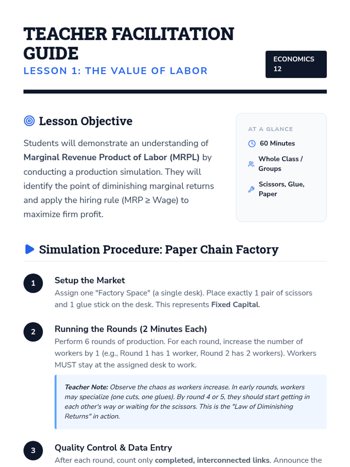 A comprehensive curriculum covering financial literacy, economic principles, and civic systems through historical case studies, ethical dilemmas, and real-world simulations.