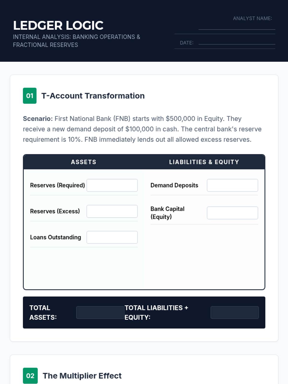 This sequence investigates the business model of commercial banks, focusing on asset/liability management, credit analysis, risk management, and the regulatory environment. Students explore the money creation process, the 'Five Cs of Credit', interest rate risk, Basel Accords, and the impact of Fintech on traditional banking systems.