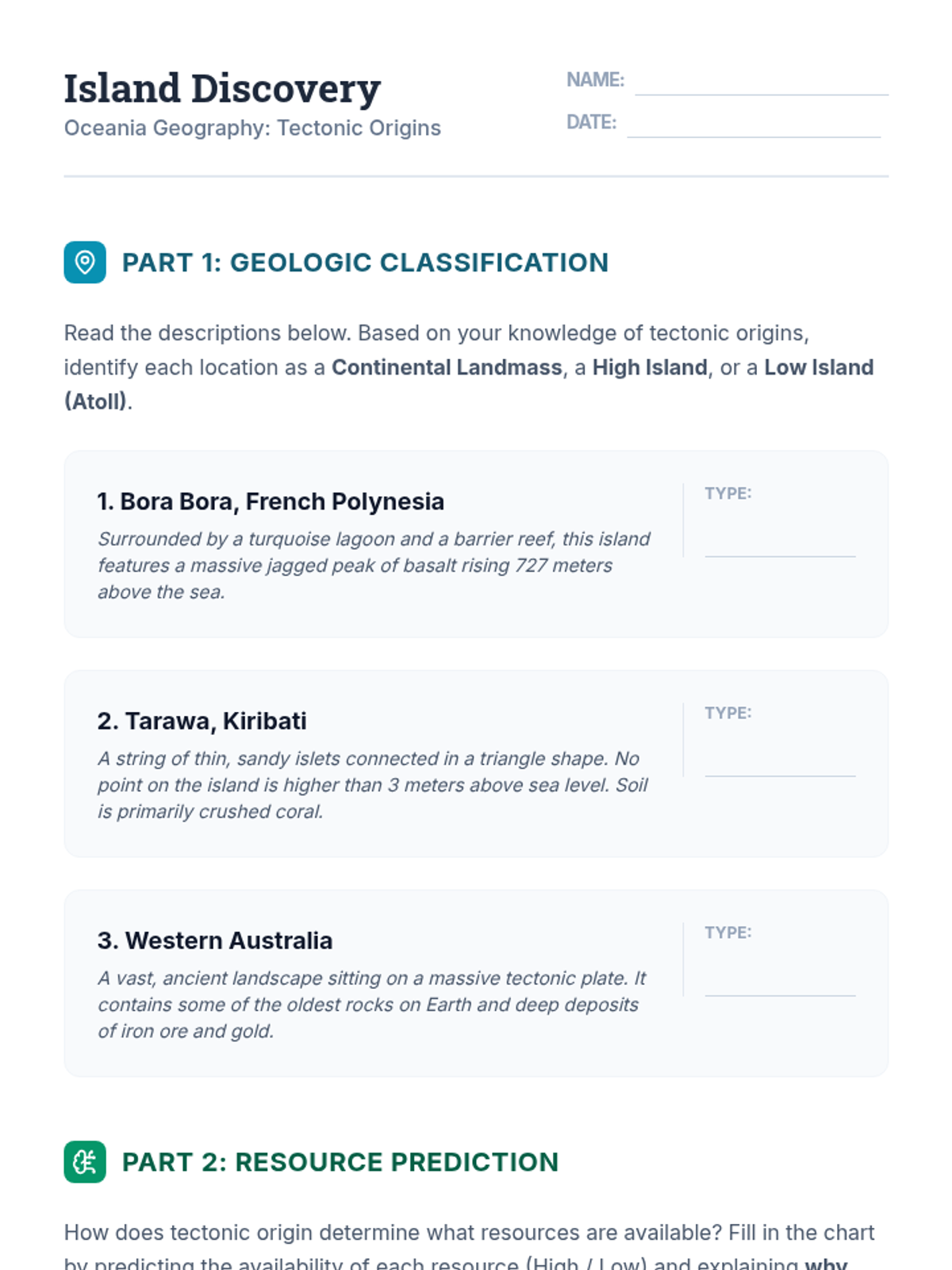 Geography of OceaniaPhysical landforms, climates, and natural resources across Australia, New Zealand, and the Pacific Islands. Examines human adaptation to diverse environments ranging from coral atolls to arid continental deserts.