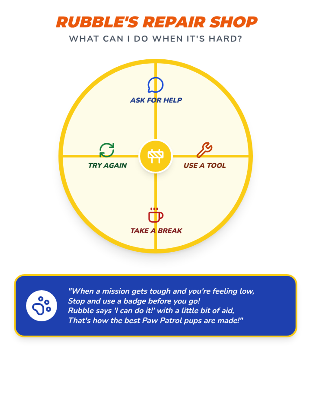 Rubble Repair Choice Board. Dividers fixed, contrast improved, and rhyme box spacing optimized to prevent page breaks.