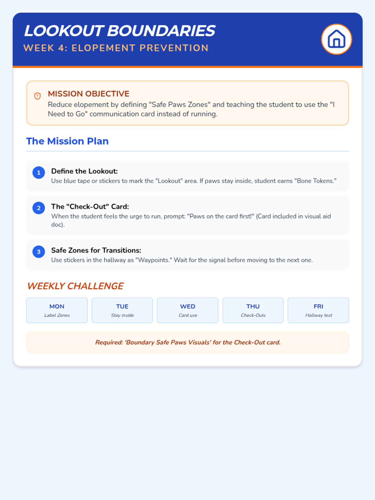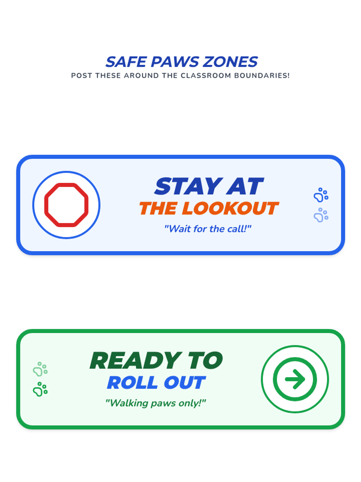 Boundary Safe Paws visual aids. Fixed page break issue by putting the Check-Out card on its own page and improved contrast.