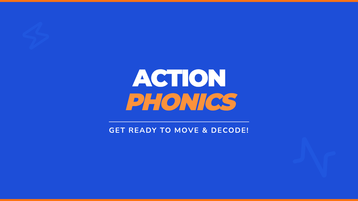 An energetic presentation featuring high-contrast visuals and specific gesture instructions for key phonemes and CVC blending.