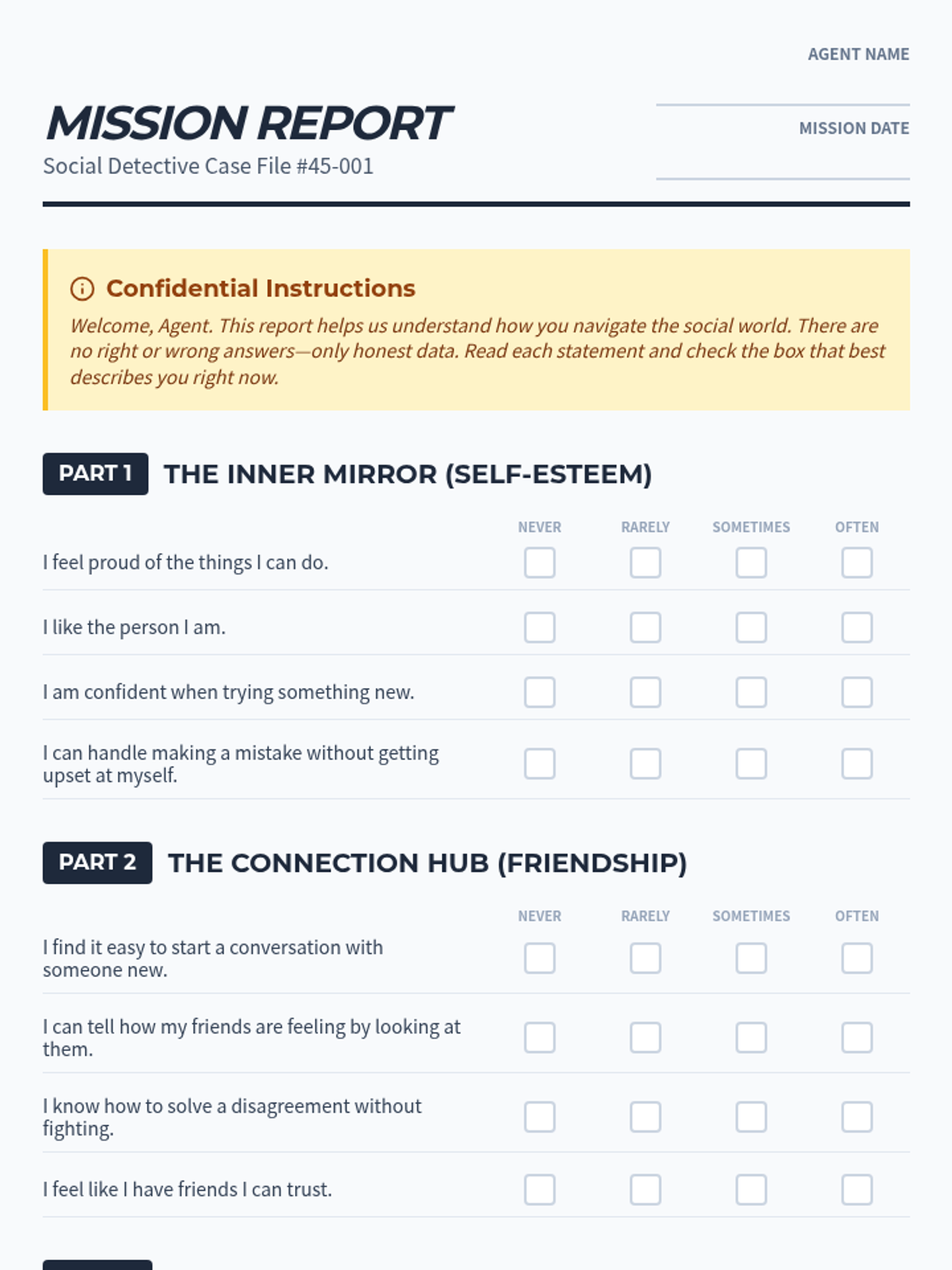A comprehensive slide deck for Lesson 1 (Glitch Guard) that introduces the concept of cognitive distortions as 'system glitches'. Includes definitions of ANTs, the 'System Crash' effect, a preview of the 10 glitches, board game rules, and visual guides for the 'Login/Logout' rituals. Updated for better spacing, contrast, and layout.