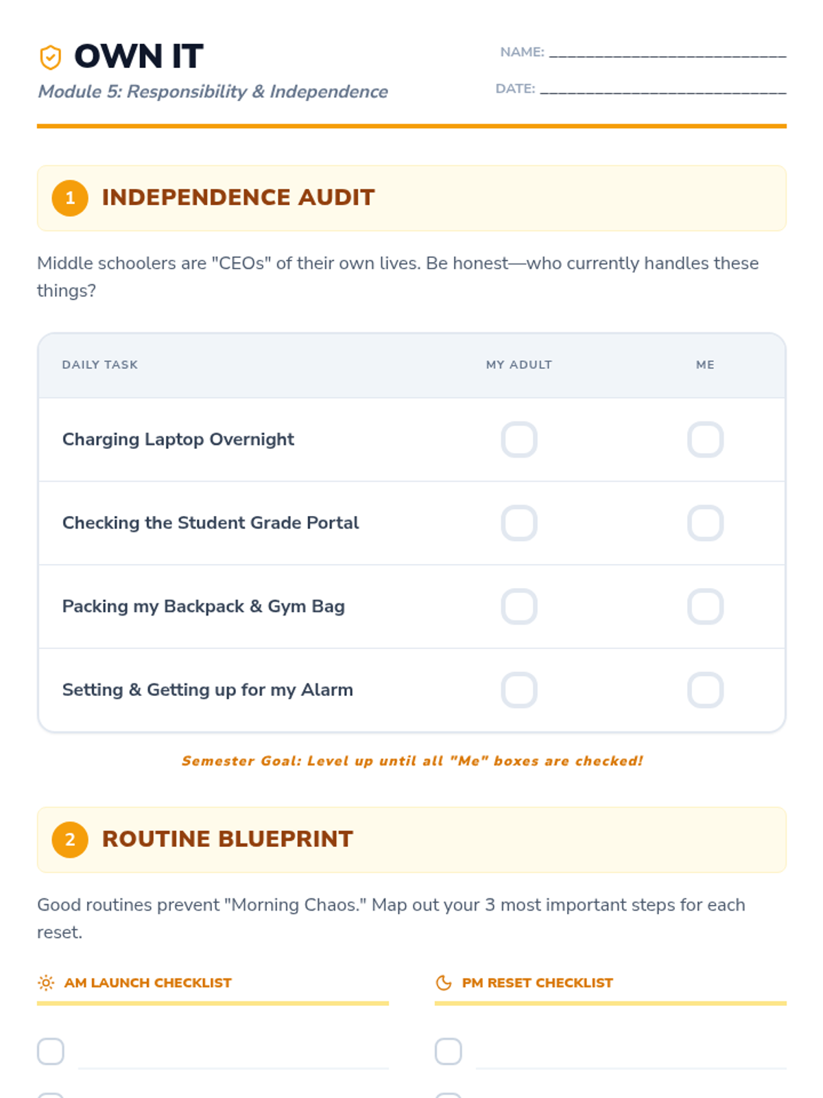 A self-audit and routine-building worksheet to help students take ownership of their school life and daily habits.