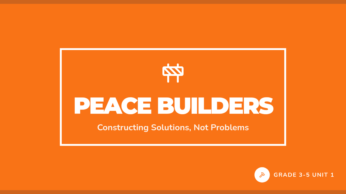Visual slide deck for a 15-20 minute lesson on conflict resolution and I-messages. Features a high-energy 'Peace Builder' construction theme with clear visual cues and practice scenarios.