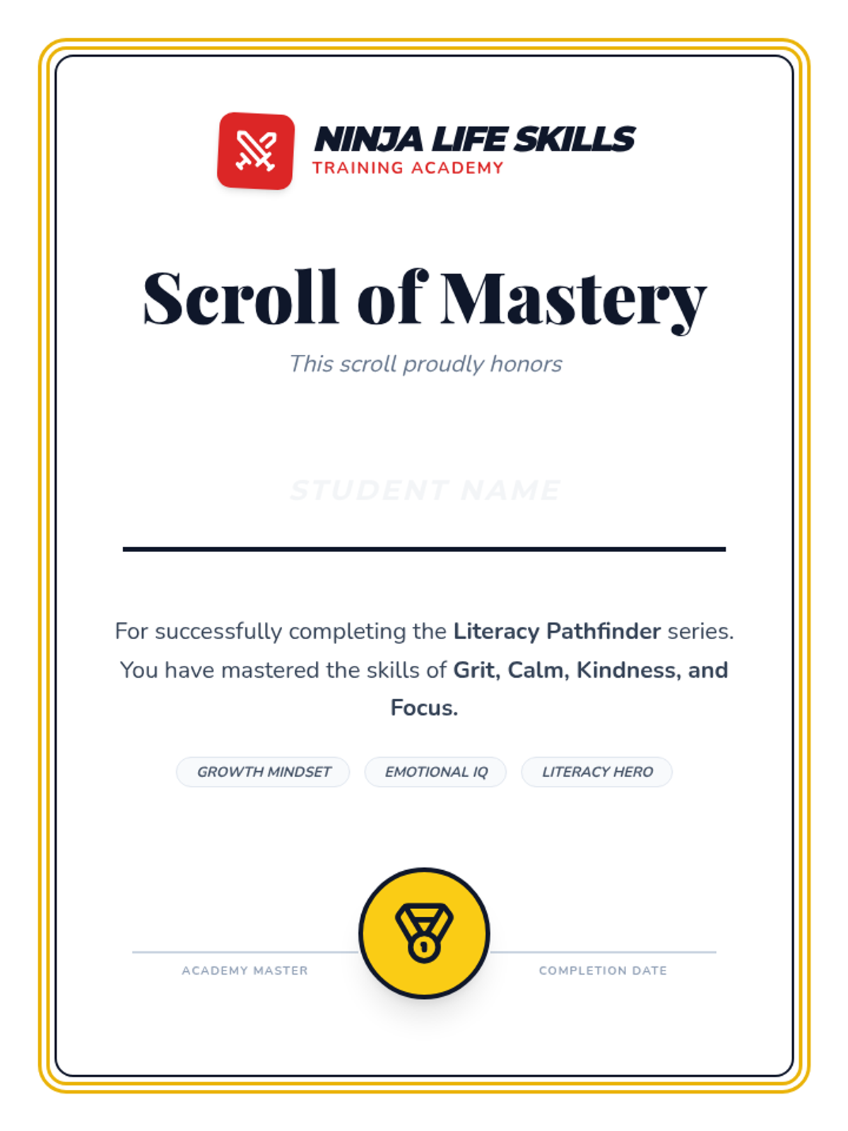 A student-friendly certificate of completion for the Ninja Life Skills course. Revised for ink efficiency, handwriting spaces, and visual balance. Removal of placeholder text.