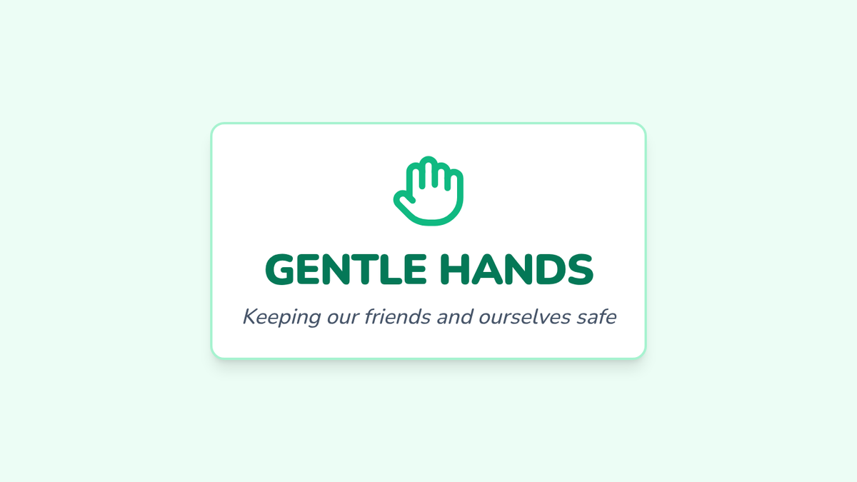 Instructional slides for teaching Kindergarten students about the importance of "gentle hands," differentiating between safe and unsafe behaviors, and validating emotional responses.