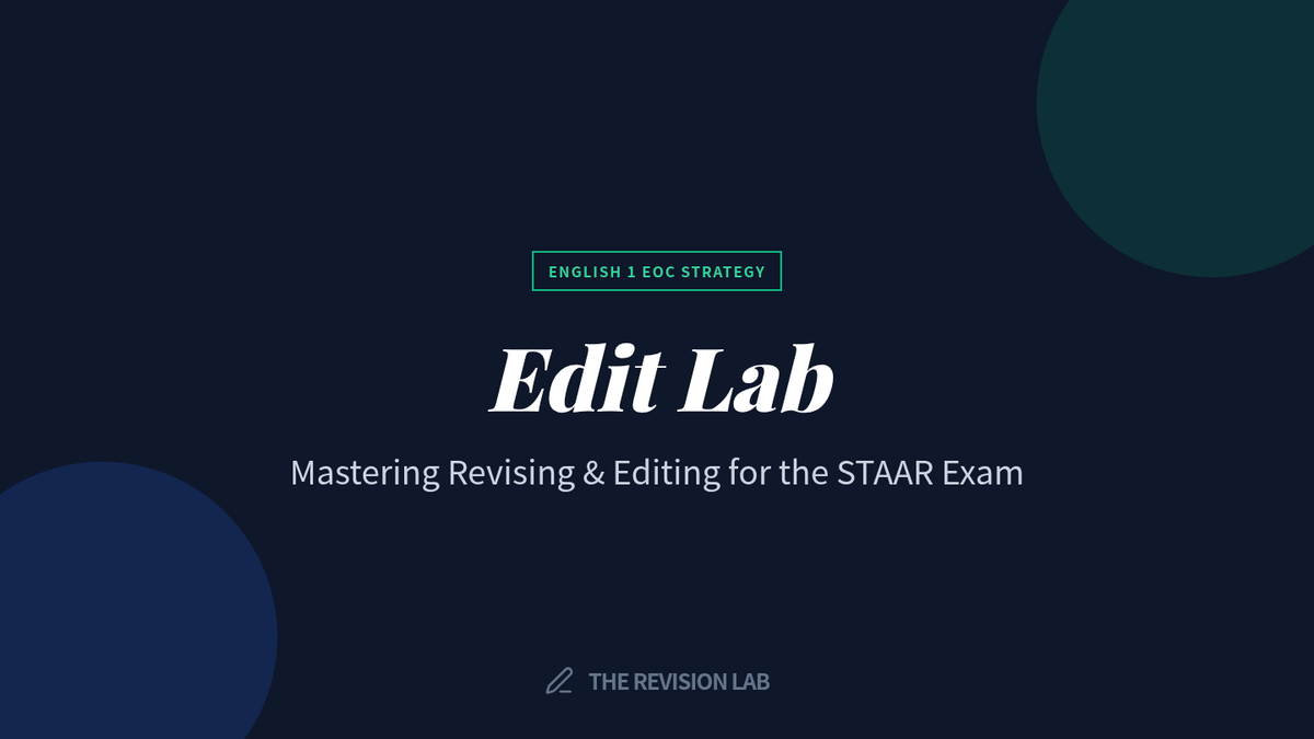 Detailed answer key and rationales for the EOC Edit Lab practice, providing skill focus and TEKS alignment for each question.