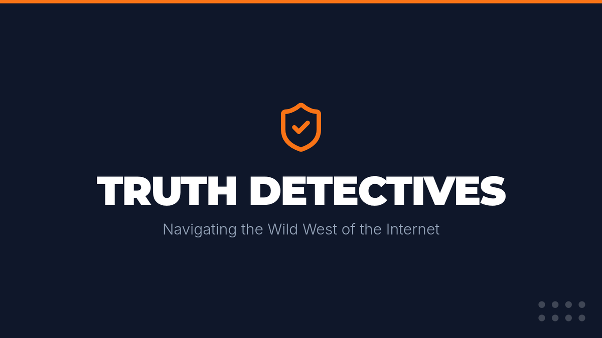 Visual presentation for teaching students how to recognize fake news, introducing the SIFT method and identifying clickbait.