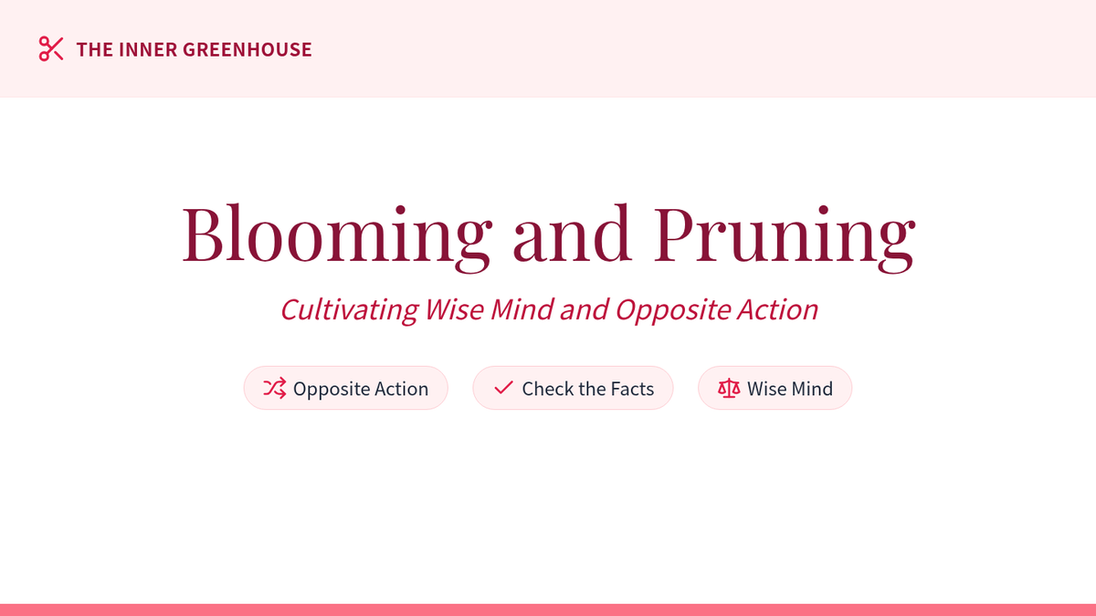 Advanced DBT slides for adults. Covers the concepts of Wise Mind and Opposite Action. Updated to fix layout, tracking, and Venn diagram visuals.