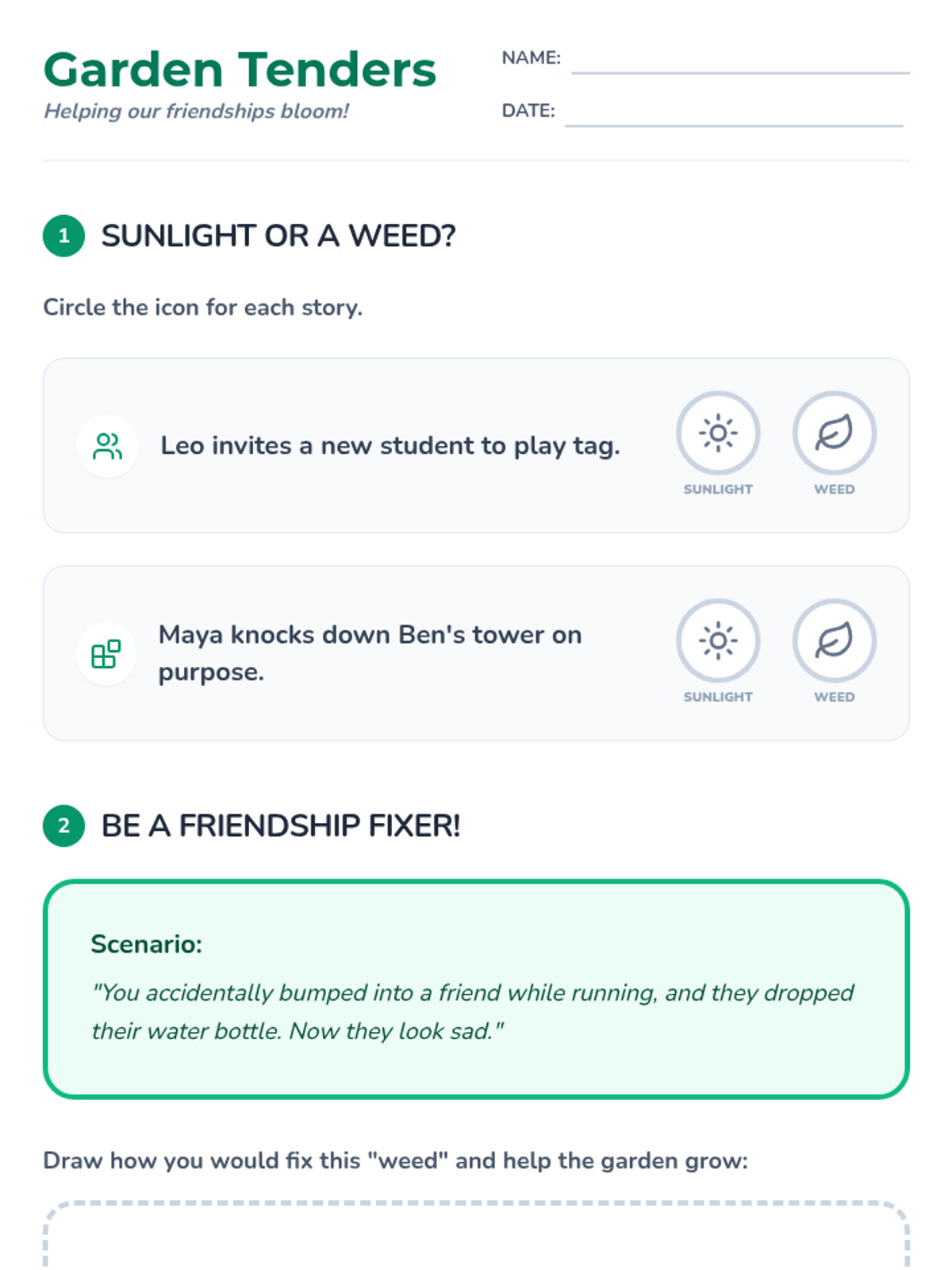 A vibrant and engaging slide deck designed for K-2 students that uses a garden metaphor to teach social-emotional skills. Revised with thematic icons and optimized sizing.