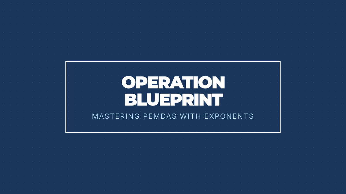 A 6-slide presentation introducing the PEMDAS order of operations with exponents, using a color-coded blueprint theme and step-by-step visual breakdowns. Contrast and consistency updated. Final answer bleed fixed. Bolder math symbols.