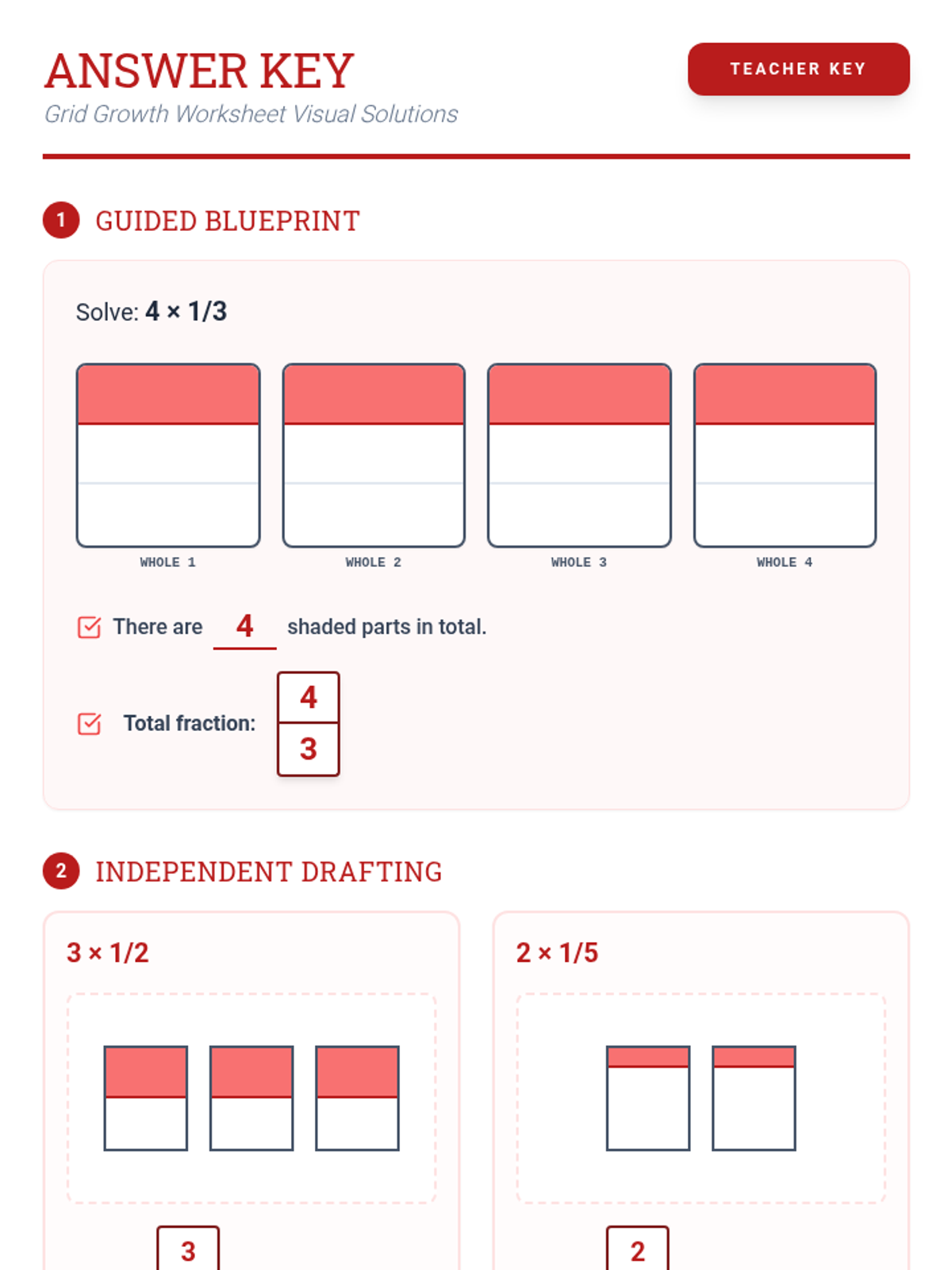Teacher answer key for the Grid Growth Worksheet with visual model solutions.