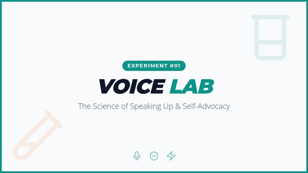 A visual presentation for the 'Voice Lab' lesson, featuring a science-themed design. It introduces self-advocacy, confidence building, and the step-by-step 'I' statement formula for 5th graders.