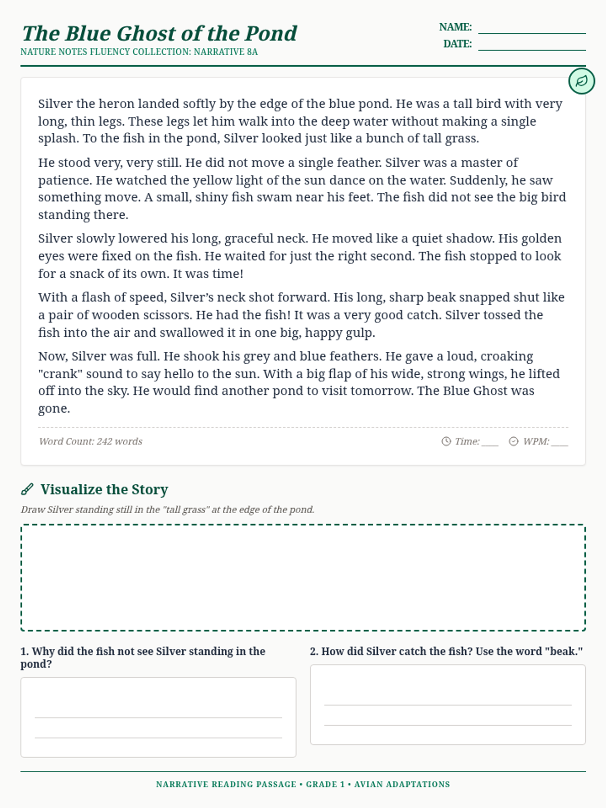 A printer-friendly black and white teacher's answer key for the bird-themed phonics lesson, optimized for easy grayscale copying.