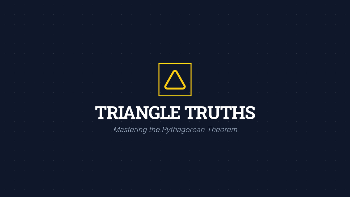 A visual slide deck introducing the Pythagorean Theorem, its formula, and step-by-step examples for basic calculations. Updated for better math rendering and layout.