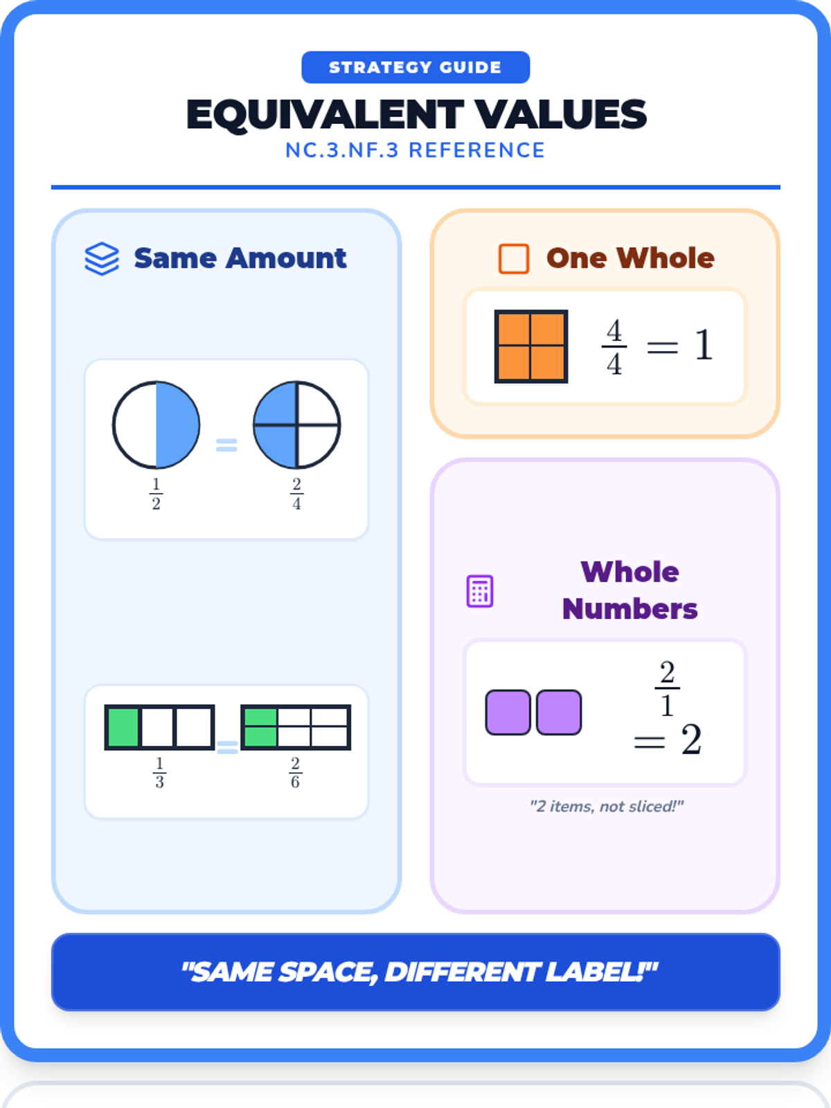 A comprehensive Mastery Packet for standard NC.3.NF.3, including a visual anchor chart and an independent practice worksheet. Fixed page breaks, number line visuals, and equation layouts. Fixes misleading circle models and adds robust SVG visuals. Ensures all content fits on individual pages.