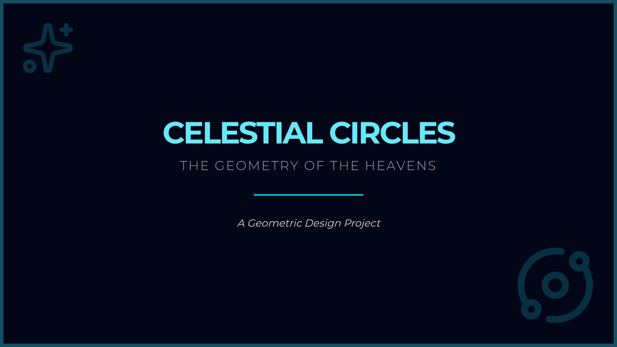 A slide deck to introduce the Celestial Circles project, featuring visual reviews of core circle theorems and project requirements for a star chart design activity.