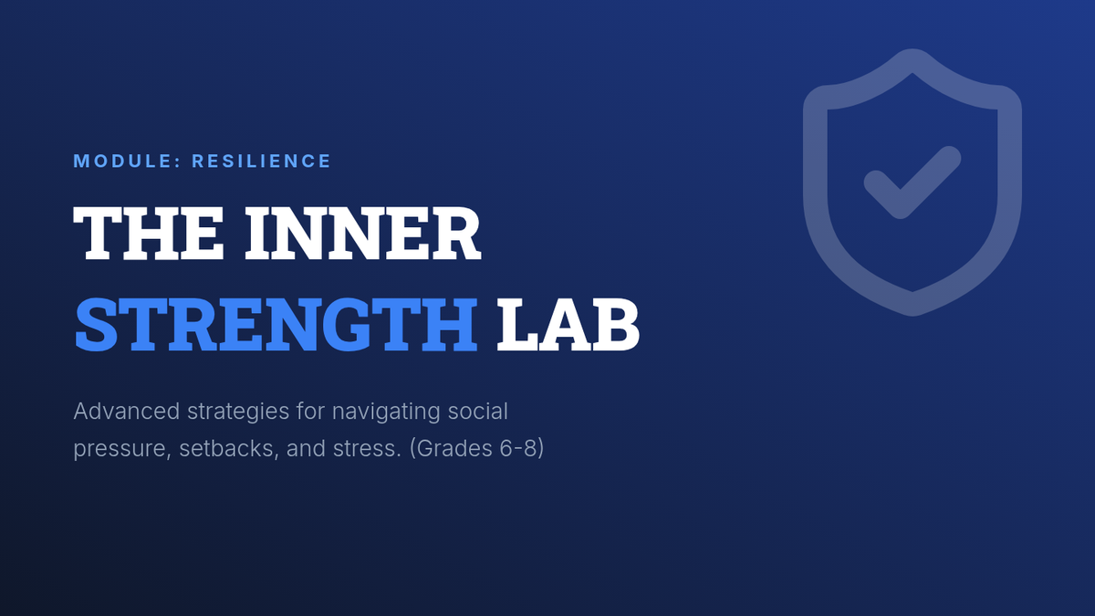 Revised slides for 6th-8th graders. Fixed tracking in headers for clarity and added specific, high-stress social scenarios for the simulation activity on Slide 4. Improved overall visual impact and layout consistency. Final revision to fix collided words and opacity.