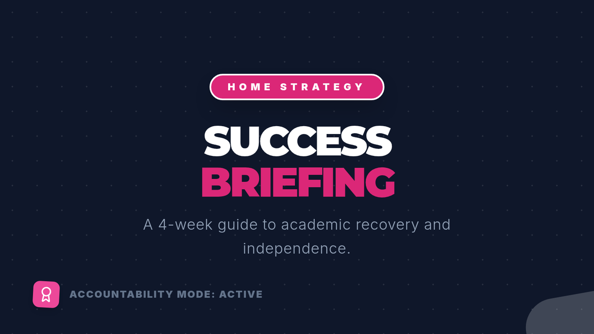 A professional-grade briefing slide deck for an 11-year-old student. Features a sophisticated Hello Kitty-inspired aesthetic with high-contrast slate and pink tones, focusing on strategic recovery, Independence, and rigorous accountability.