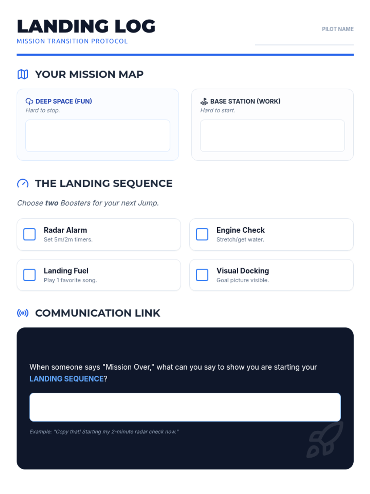 A student-facing activity sheet to help identify preferred and non-preferred tasks and plan specific "Transition Boosters" for moving between them. Now optimized for a single-page layout with thematic quadrant titles. No placeholder text included in work areas.