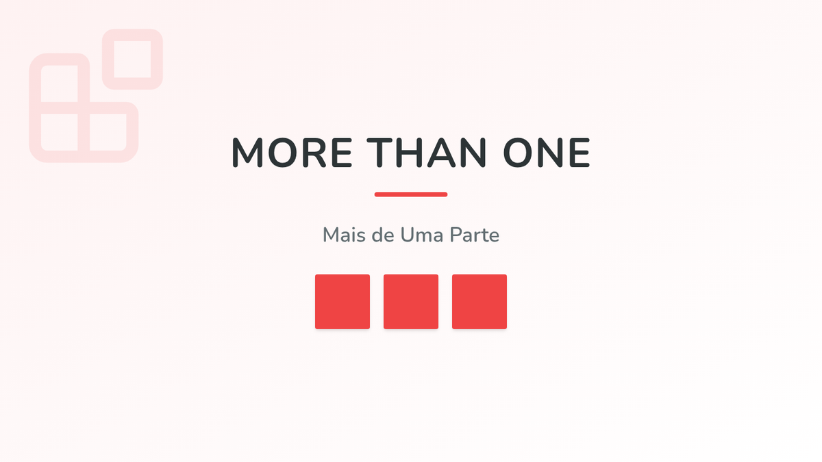 A highly visual slide deck focusing on counting multiple shaded parts (non-unit fractions), using numeric symbols and Portuguese verbal anchors.