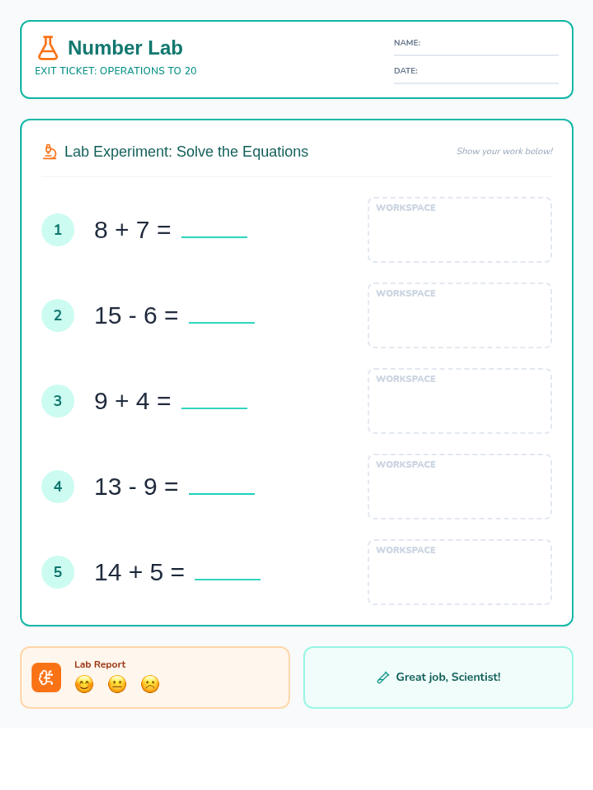 Break Training Worksheet #9 for the Operation Detectives series, themed around a 'Laundry Room Lockdown'. Features 4 word problems with ten frames, number lines, and equation areas for home practice. Revised with improved number lines and clearer stamp.