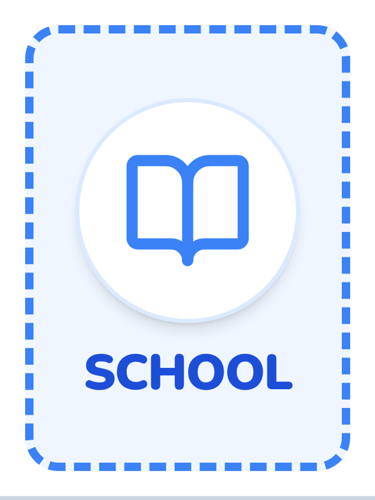 Large-print visual prop cards featuring icons and simple text for students to hold up during their commercial presentation, reinforcing the themes of school, safety, and community. Larger format for better visibility.