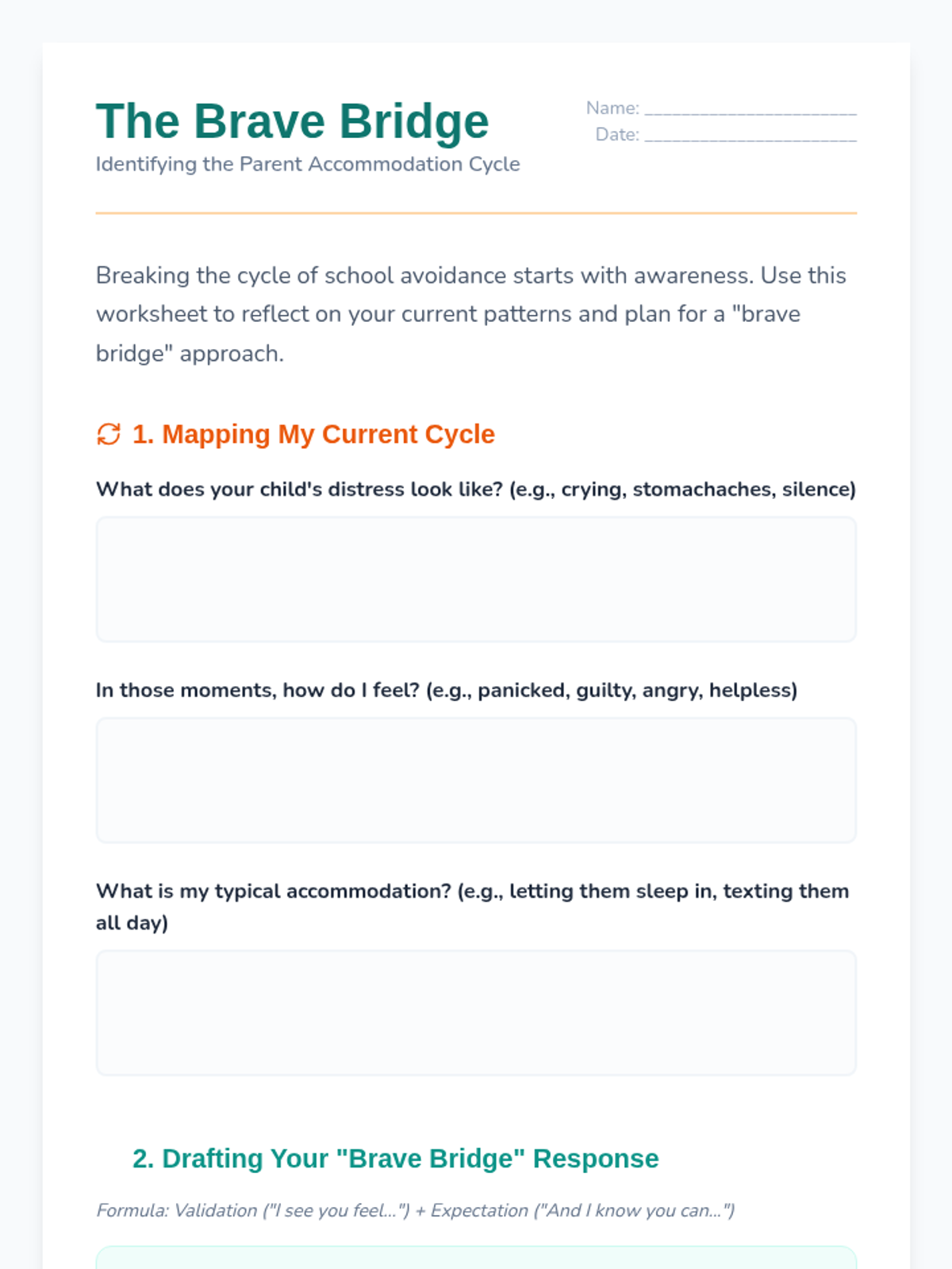 A reflection and action-planning worksheet for parents to identify their accommodation patterns and draft specific responses for their children.
