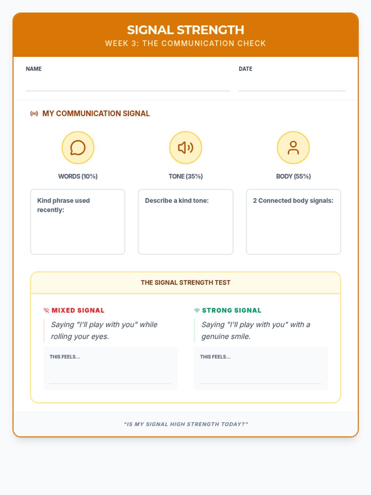 Revised student worksheet for 'Signal Strength' with increased font sizes and improved handwriting space.