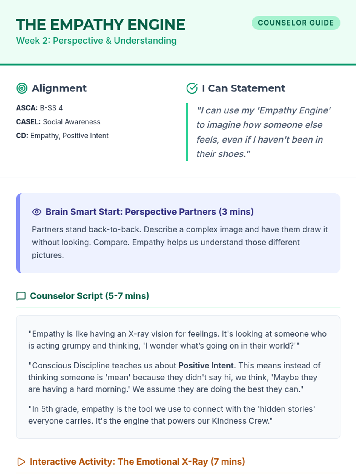 Revised Counselor guide for Week 2 with corrected formatting and page-break rules.