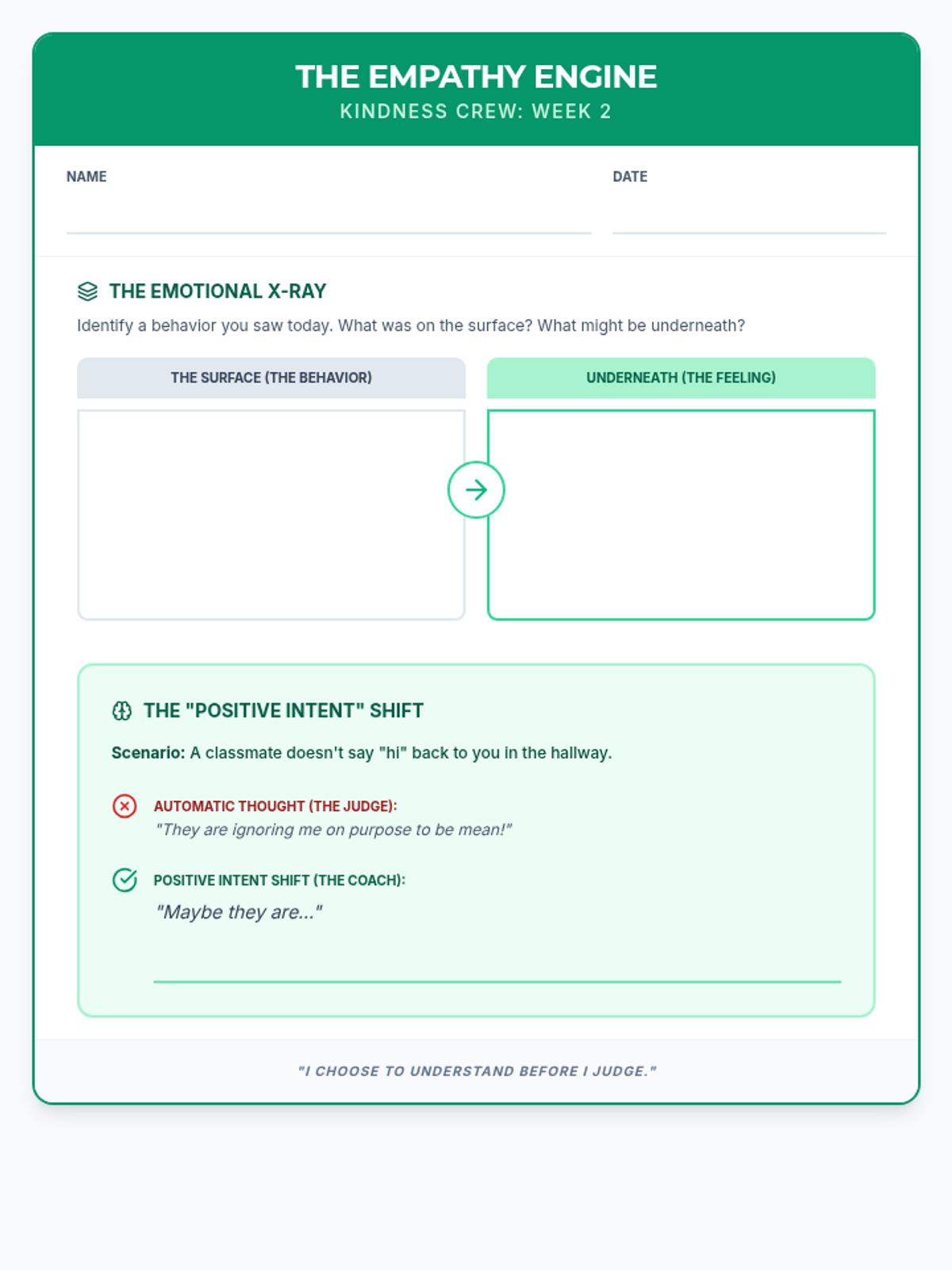 Revised student worksheet for 'The Empathy Engine' with expanded writing space and improved clarity.
