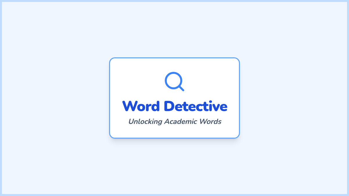 A visual slide deck introducing academic vocabulary words through simple definitions, sentence examples, and clear icons for 4th-grade students with limited literacy. Revised for better illustrative consistency.