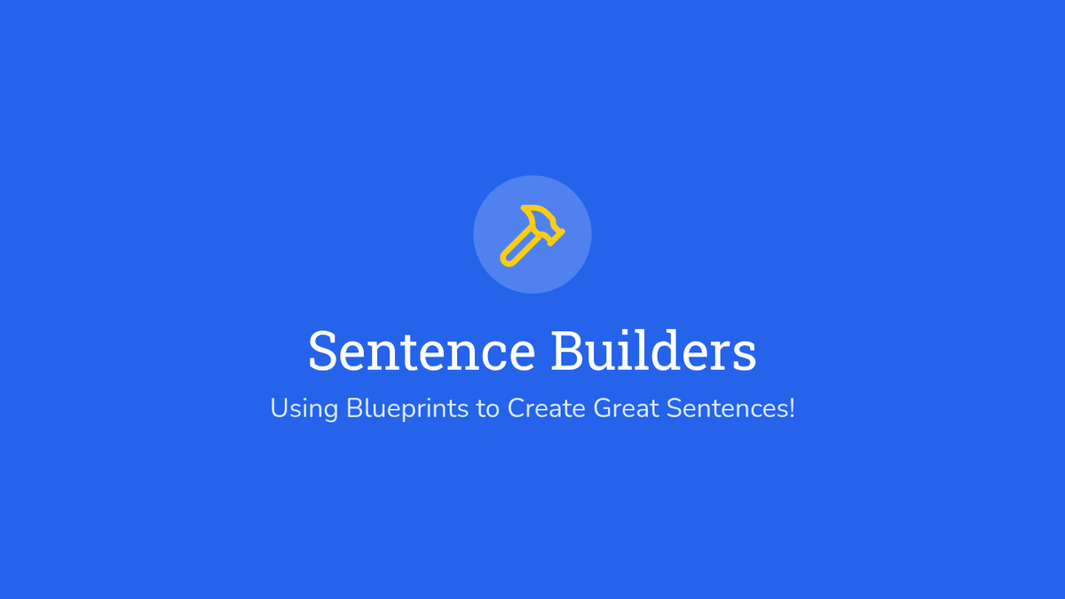 A colorful, high-contrast slide deck that introduces the concept of sentence frames as 'blueprints' for building sentences, perfect for visual learners in 3rd grade.