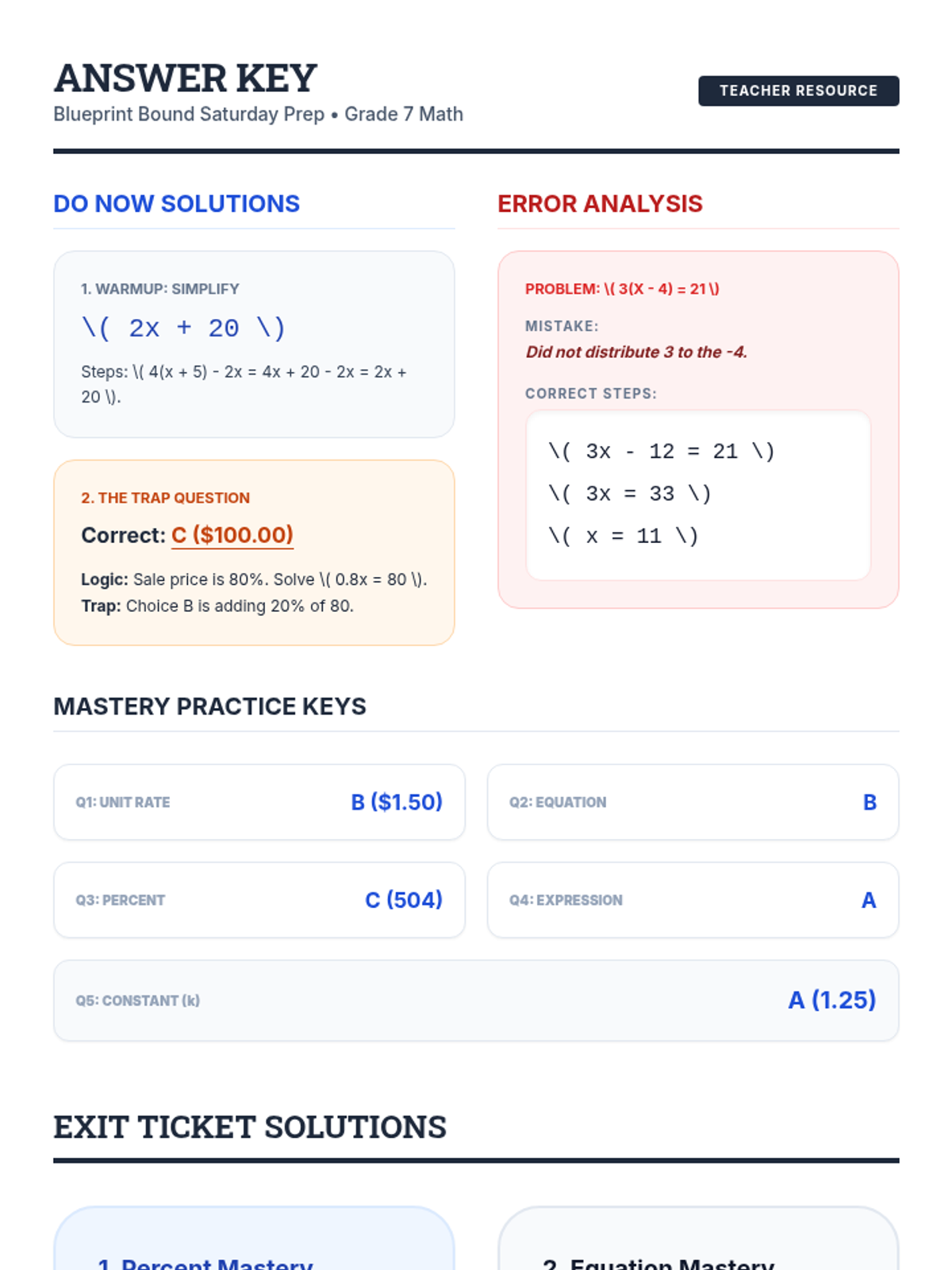 Teacher answer key for the "Circle Secrets" worksheet. Revised with sequential problem order, a thumbnail diagram for reference, and fixed page breaks.
