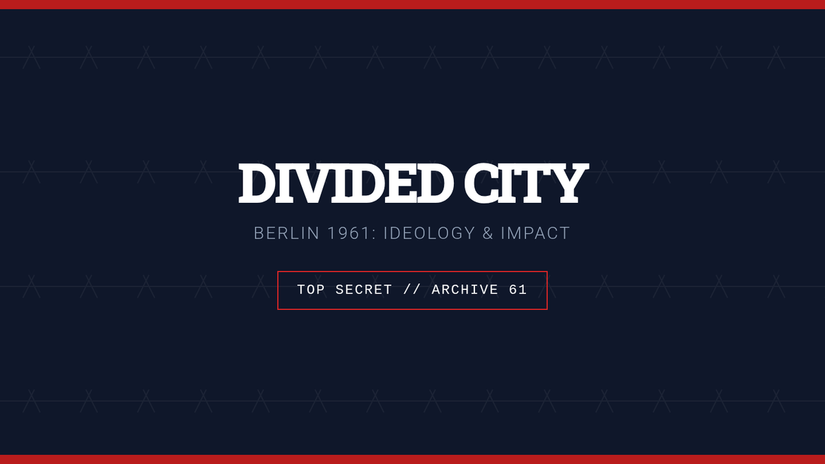 A presentation slide deck introducing the Berlin Wall's construction in 1961, emphasizing the sudden impact on civilians and the ideological clash between the East and West.