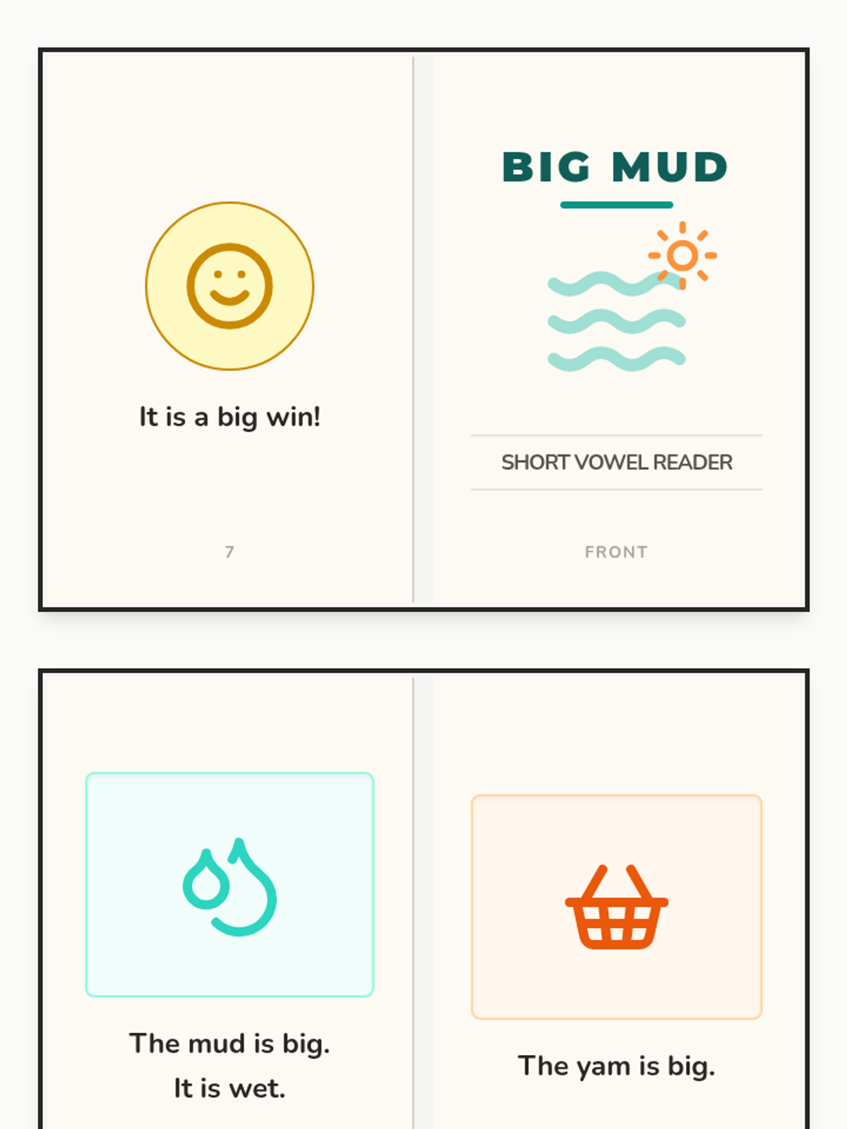 A printable half-page decodable book for 1st grade focusing on short vowel CVC words. The story, "Big Mud," explains the importance of the Nile River through simple, phonetically controlled text, strictly adhering to short vowel and CVC constraints.