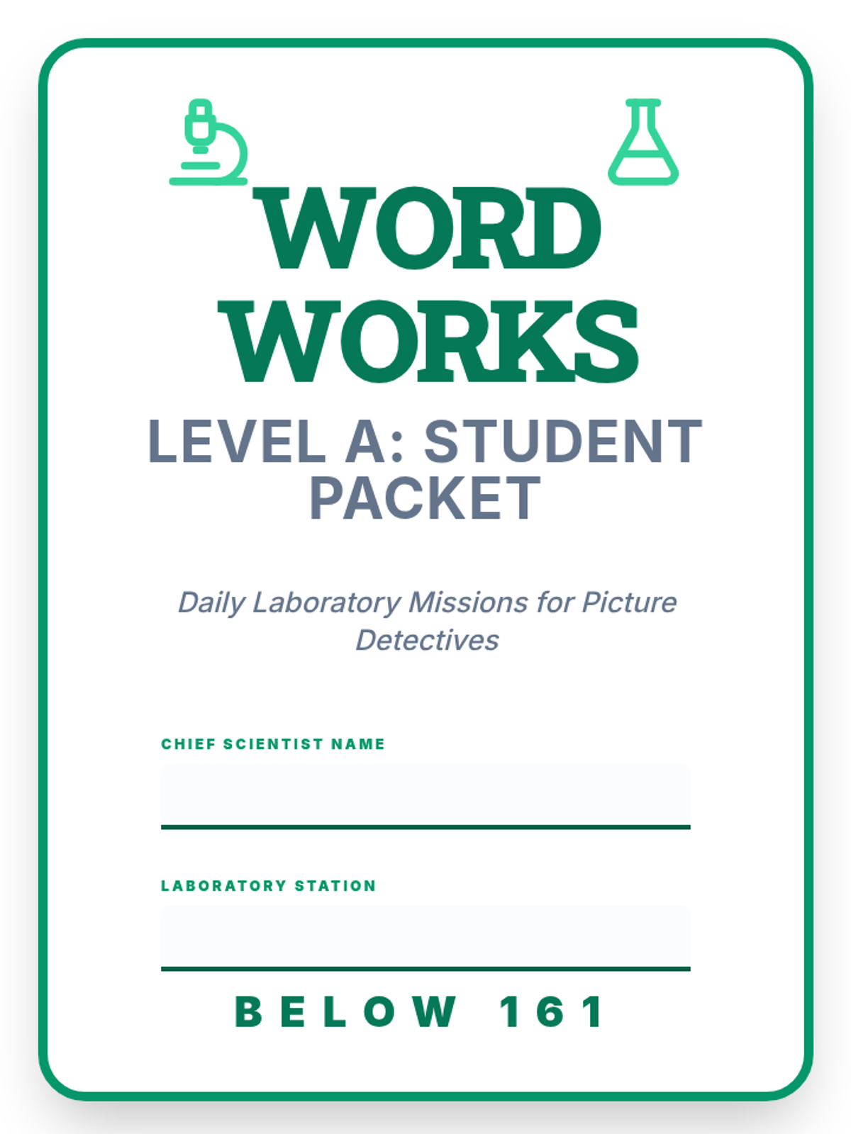 A consolidated student packet for Level A students (Below 161), featuring all 3 days of 'Word Works Lab' missions and a cover page. REVISED: Fixed page breaks and lengthened student blanks.