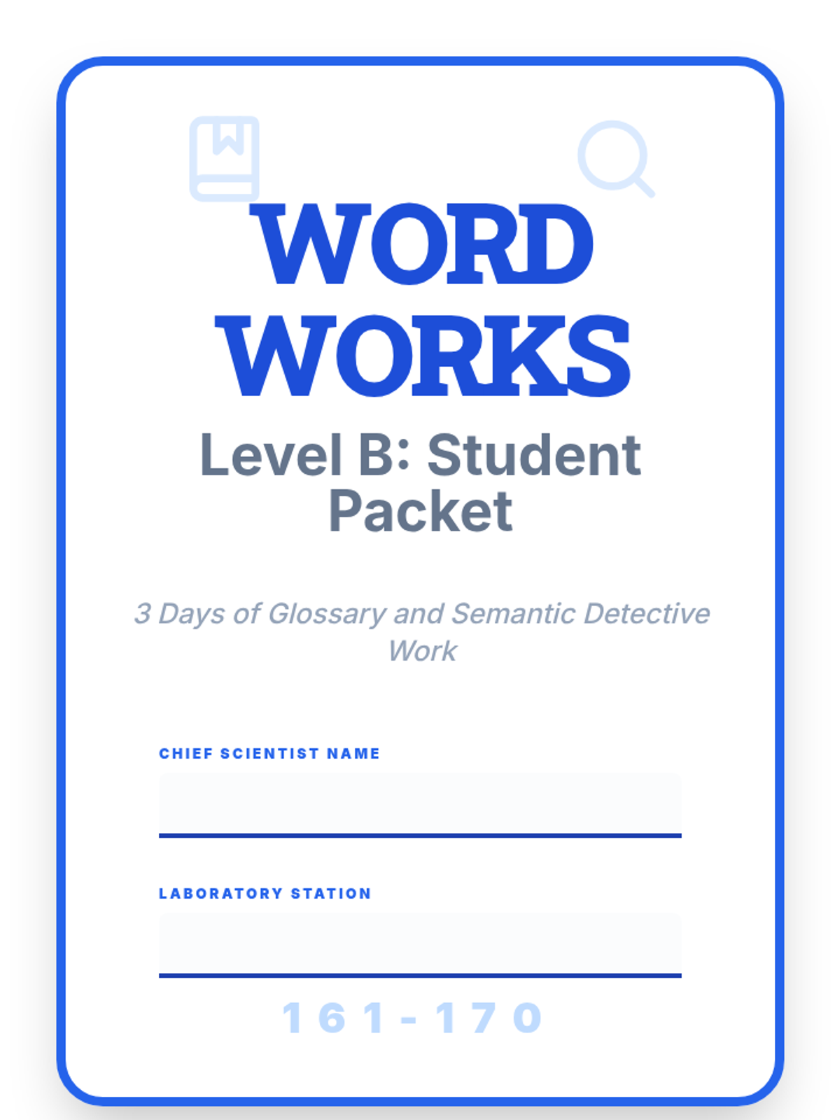 A consolidated student packet for Level B students (161-170), featuring all 3 days of 'Word Works Lab' missions and a cover page. REVISED: Fixed page breaks, increased contrast, and enlarged student targets.