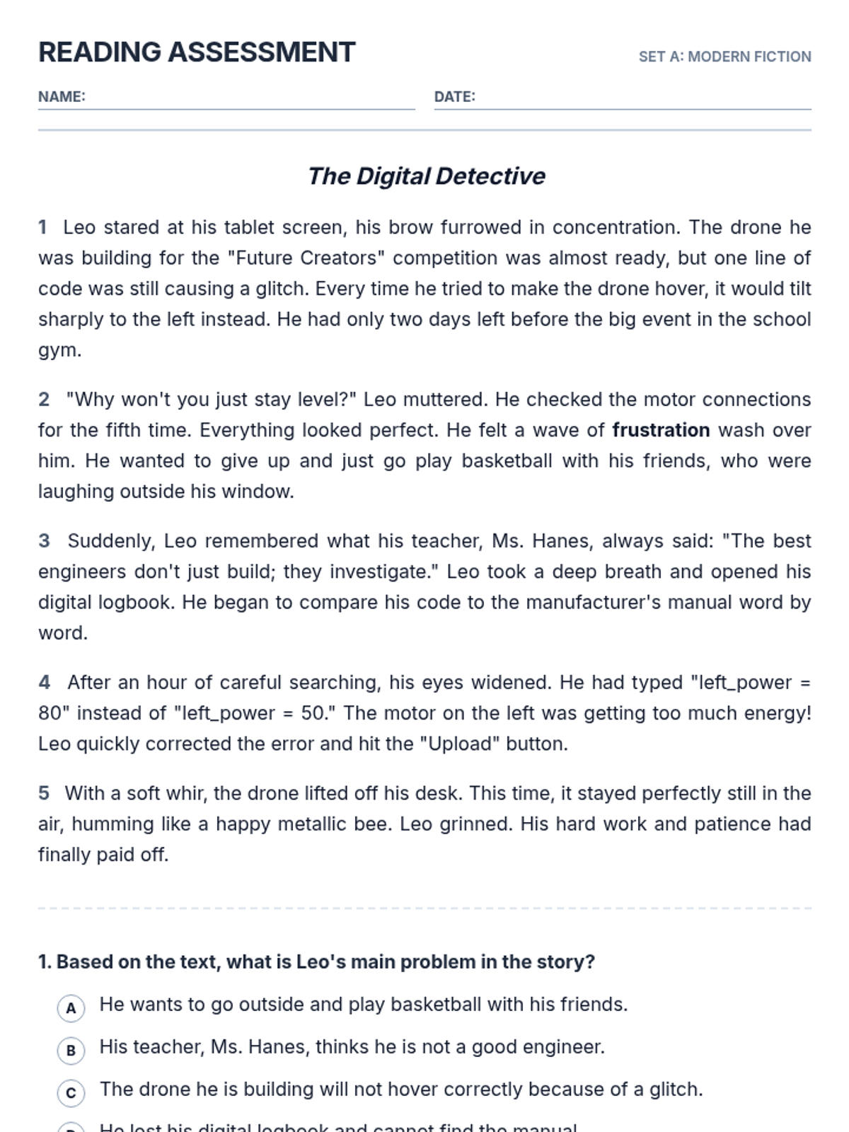 Instructional slides for teaching context clues (IDEAS strategy) and dictionary skills with a high-tech data-analysis theme. Revised for better layout and punctuation handling.