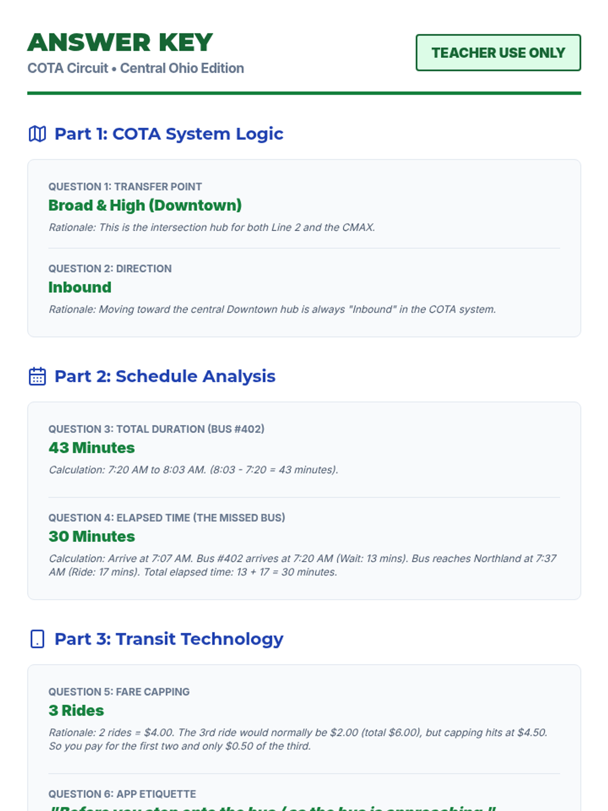 A comprehensive answer key and discussion guide for teachers, providing thought processes and example responses for common interview questions.