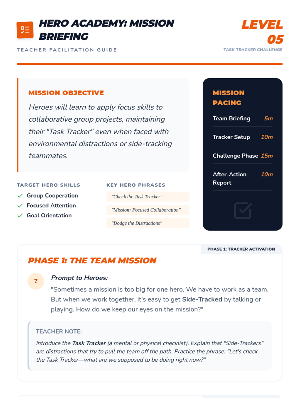 Teacher facilitation guide for the Hero Heart Graduation. Includes a skill recap ceremony, pledge facilitation, and strategies for maintaining social skills after the program.