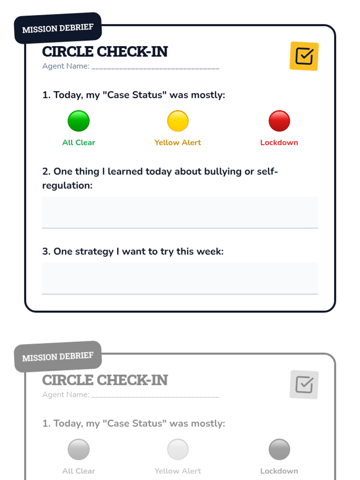 A printable exit ticket for small group reflection. Includes an emotional status check, a learning prompt, and a goal-setting section for applying coping strategies.