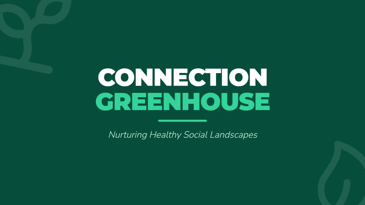 A visual slide presentation introducing the Connection Greenhouse botanical metaphor for healthy social interactions and boundary setting.