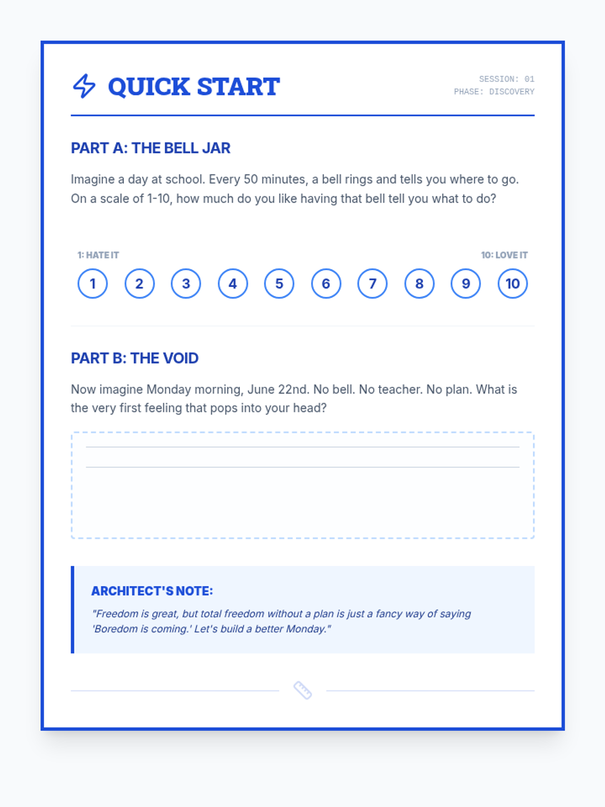 A quick-start warm-up activity to help students reflect on their feelings about school structure versus the unstructured nature of summer break.