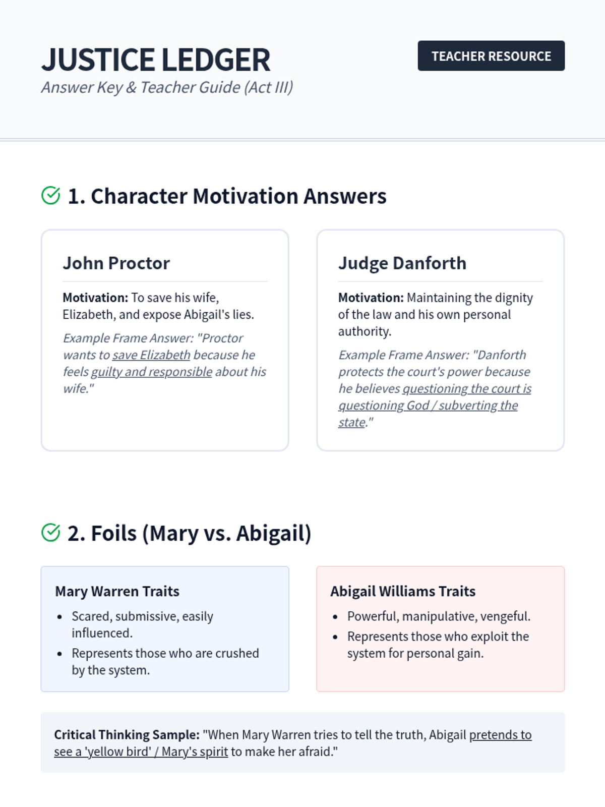 A comprehensive answer key and teacher guide for the Justice Ledger Worksheet, providing sample responses and instructional strategies for supporting English learners.